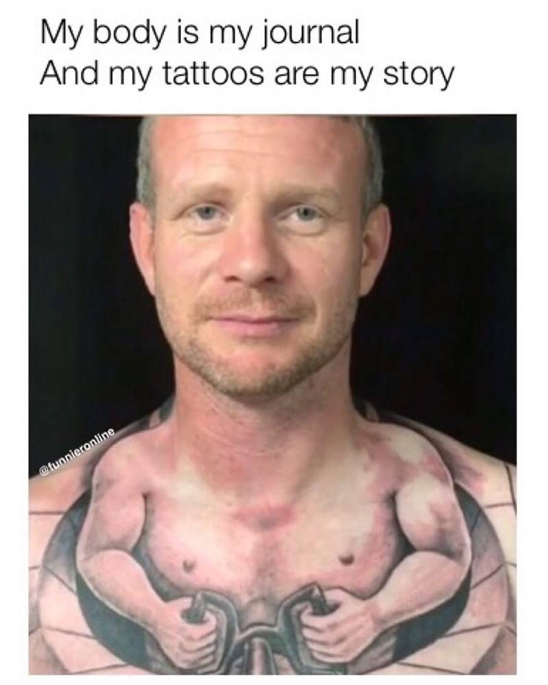 Lukas kaiser is a comedy writer and an associate film and television producer. I have a homemade tattoo on my palm. Some just think that any tat will look great giving us an opportunity to take a good laugh at numerous bad tattoo memes. Community member follow unfollow. What you can do is make a funny meme from them and post it on sites like reddit or imgur. 50 hideous and stupid tattoos that will make you fear the tattoo artist s chair for life. Funny tattoos are in form of funny pictures funny quotes and even funny signs.