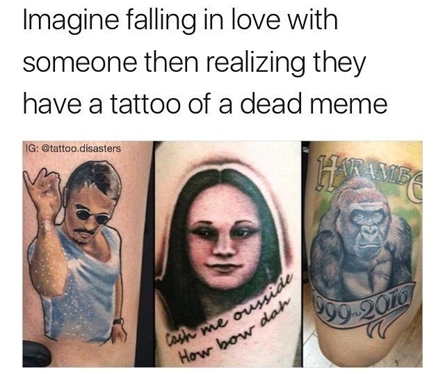 Funny meme tattoos. Ok you know what. We need that shit. Share them with us below. May 30 2015 explore lucky bamboo tattoo s board tattoo memes followed by 288 people on pinterest. Tattoo memes tattoo signs funny tattoos love tattoos tattoo quotes ink tattoos tattoo now make tattoo happy birthday tattoo page not found get a funny take on today s popular news entertainment lifestyle and video content all written by the people who bring you those funny ecards. Seen any other insane meme tattoos around. Out of all of them this is probably the most lit.