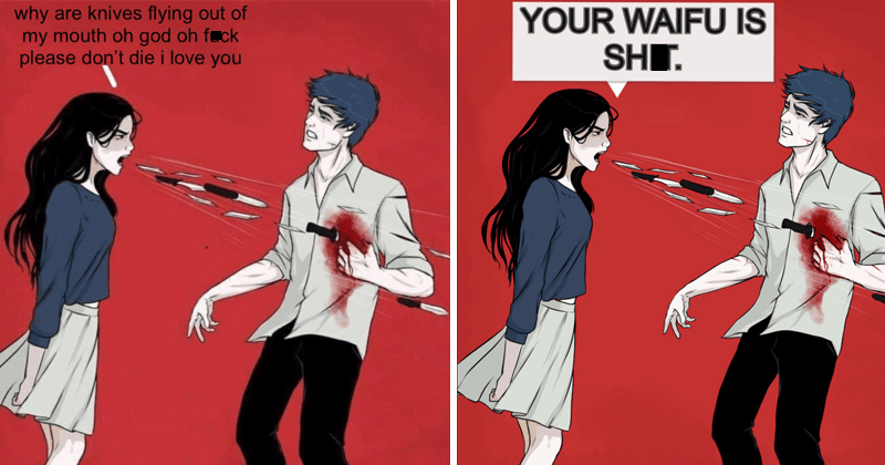 Caption a meme or image make a gif make a chart make a demotivational flip through images. About woman shouting knives refers to a symbolic artwork by a russian artist alena sofronova in which knives and blades are flying out of a woman s mouth as she shouts piercing a man she is shouting at. The format features a drawing by russian artist alena sofronova in which a woman seems to be shouting knives at a man who is clearly bleeding and suffering. Browse the best of our woman shouting knives image gallery and vote for your favorite. Image gallery list view know your meme advanced search protips. While the drawing has an earnest message the memes are far from deep. Starting in july 2019 the artwork gained popularity as a meme with users adding humorous remarks that the woman might have said.